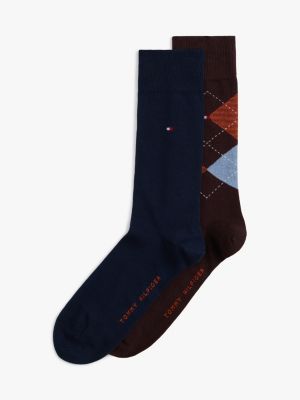 Diese Socken im 2er-Pack punkten mit Stretch-Baumwollmix und einer aufgestickten Flag. Sowohl das karierte als auch das einfarbige Paar passen zu jedem Business-Outfit.