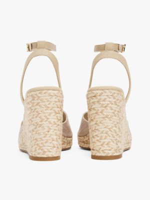 Diese Sandale aus Chambray aus reiner Baumwolle mit hohem Keilabsatz im Espadrille-Style ist perfekt für Events bei warmem Wetter.