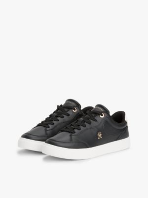 Ein Kontrast-Einsatz an der Ferse und das TH-Monogramm-Emblem machen diesen schicken Leder-Sneaker im klassischen Court-Style zum Eyecatcher.