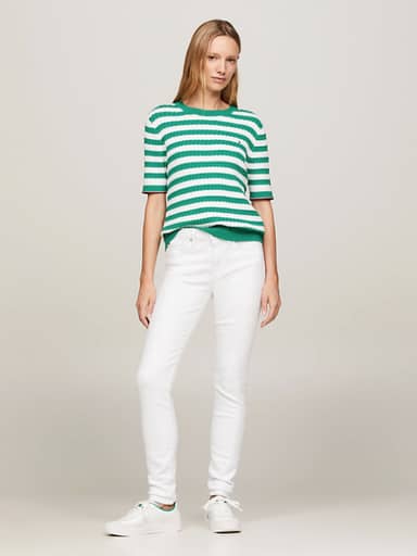 Wenn Sie die perfekte Damenjeans suchen, sind Sie bei Tommy Hilfiger genau richtig. Entdecken Sie unsere Auswahl an Jeggings und kommen Sie in den Genuss figurschmeichelnder Jeans für Damen. Die Skinny-Jeans von Tommy Hilfiger sind von der Hüfte bis zum Knöchel besonders eng geschnitten. Der Star unter den Jeans sind in dieser Saison allerdings unsere zerrissenen Jeans für Damen. Mit unserem Video-Tutorial können Sie lernen, wie Sie eine Ripped-Jeans selbermachen.