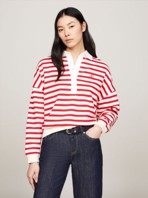 Gönn dir lässigen Komfort mit Damen-Kapuzenpullovern und -Sweatshirts von Tommy Hilfiger, die unsere College-Ursprünge in einer All-American-Ästhetik zelebrieren. Erweitere deine Garderobe mit einem klassischen Kapuzenpulli der legendären 1985er-Kollektion, der sorgfältig aus umweltfreundlichen Materialien gefertigt wurde und dem kultigen Design eine zukunftssichere Note verleiht. Kombiniere ihn an entspannten Tagen mit einer Jogginghose oder mit einer Jeans, wenn du dich mit Freunden auf einen Smoothie triffst. Genieße in einem lässigen Sweatshirt mit dezenten Markendetails entspannten Luxus mit einem Hauch von Eleganz. Oder entscheide dich für Hoodies oder Sweatshirts im cropped Fit, die deine Vorzüge hervorheben und trotzdem bequem sind. In Kombination mit hoch-taillierten Shorts und Sneakern bieten sie auf dem Weg ins Fitnessstudio den perfekten Sport-Look. Mit den Damen-Hoodies und -Sweatshirts von Tommy Hilfiger kreierst du lässige Looks im klassischen College-Stil.