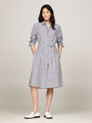 Denim-Hemdkleid mit Bindeband und Logo-Stickerei