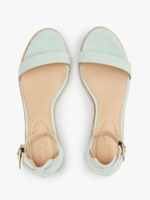 Diese Espadrille aus edlem Wildleder hat einen klassischen, mit Seilen bedeckten Keilabsatz mittlerer Höhe – perfekt für sonnige Tage.