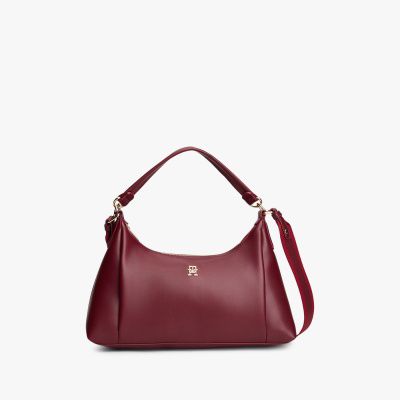 Diese Schultertasche mit auffälliger, aktueller Silhouette hat einen abnehmbaren Crossbody-Riemen.