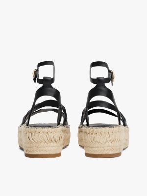 Setze auf einen schicken Look in dieser Ledersandale mit geprägten Riemen und einer mit Seil bedeckten Plateausohle im traditionellen Espadrille-Stil.