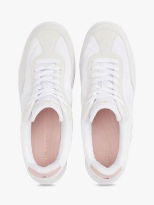 Dieser Low-Top Sneaker mit dynamischen Einsätzen in Kontrastfarben und unterschiedlichen Strukturen versprüht Vintage-Vibes.