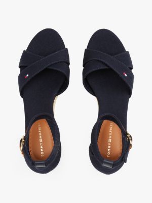 Dank mittelhohem Keilabsatz eignet sich diese Espadrille mit offenem Zehenbereich und Baumwollriemen im Crossover-Design perfekt für lange Erkundungstouren.
