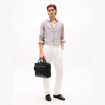 Diese Laptop-Tasche mit Narbenstruktur und Klappverschluss an der Außenseite ist das perfekte Accessoire für deine Büro-Outfits.