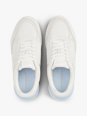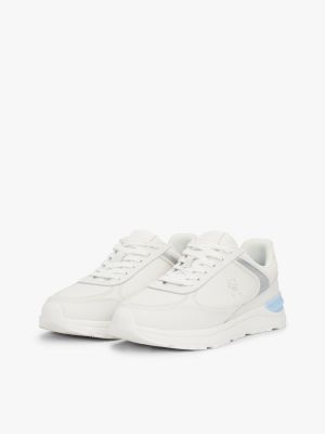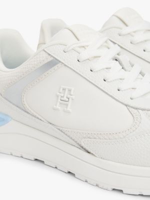 Dieser Running-Sneaker vereint eine aktuelle, klobige Sohle mit strukturiertem Nappaleder und edlen Metallic-Einsätzen.