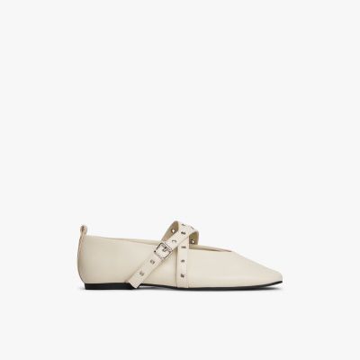 Überkreuzte Riemen mit Metall-Ösen machen diesen Mary Jane mit Square Toe zum Hingucker.