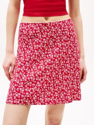 Der zarte Besatz und das Schleifen-Detail verleihen diesem verspielten Minirock mit Blumenprint Vintage-Vibes.