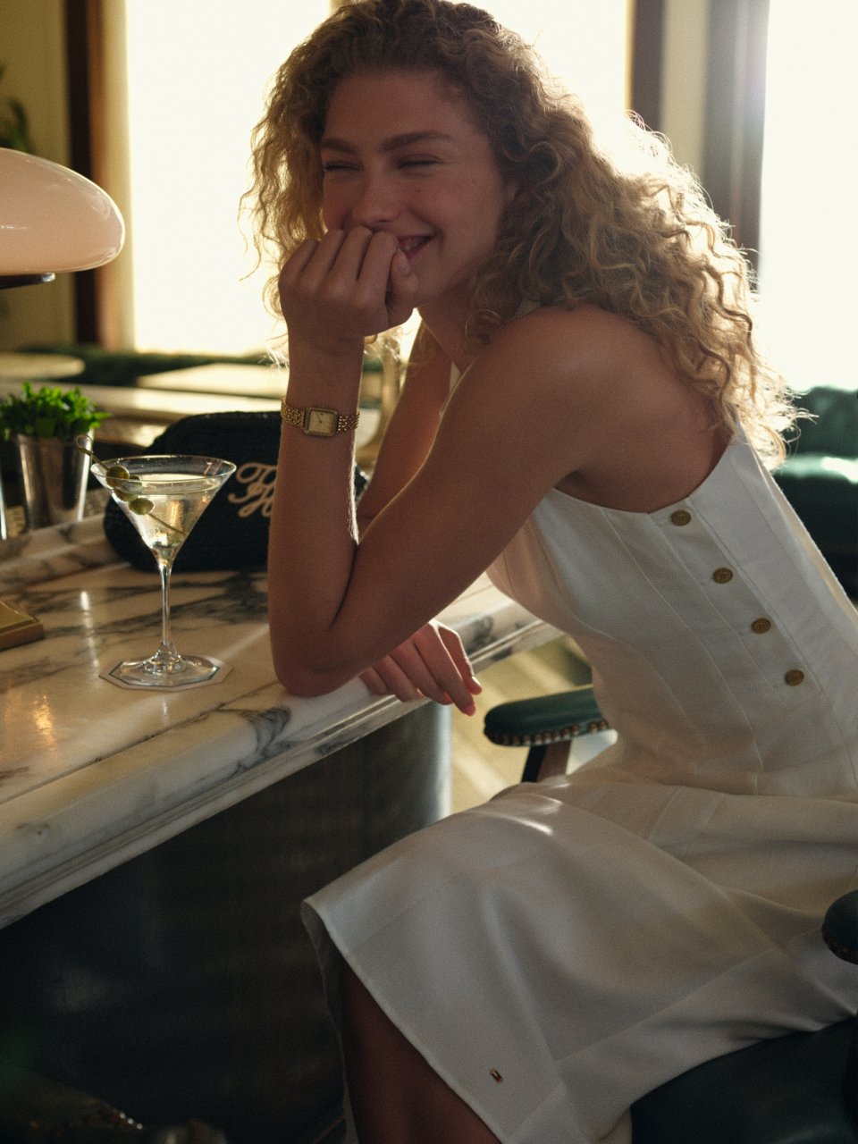 Mini-Etuikleid mit goldfarbenen Knöpfen