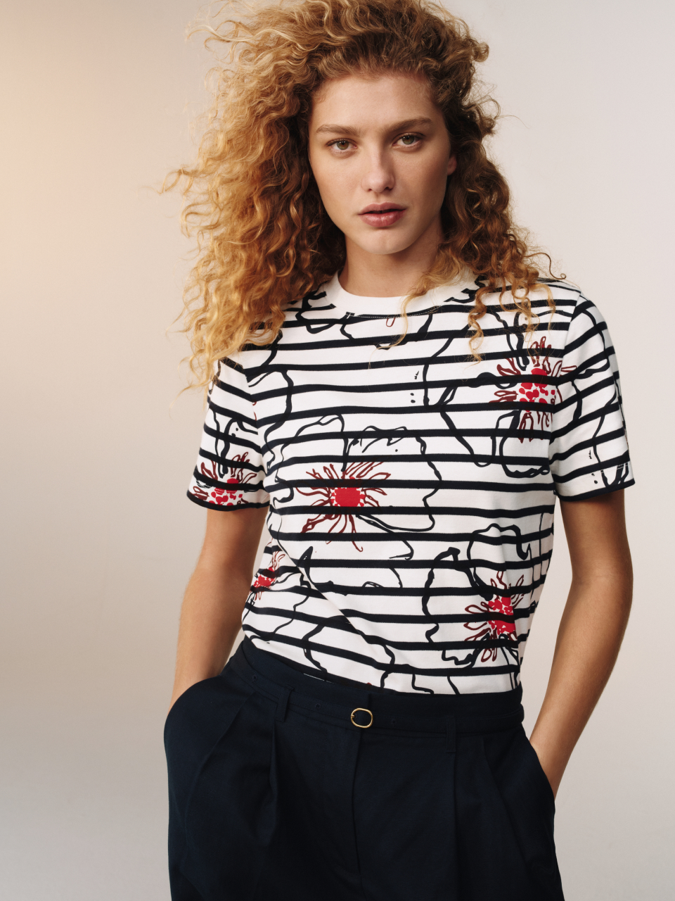 T-Shirt aus Interlockstrick mit Blumen-Grafik