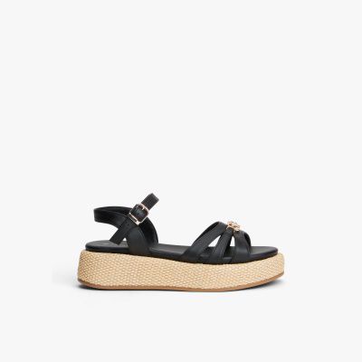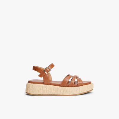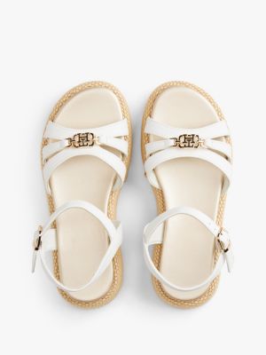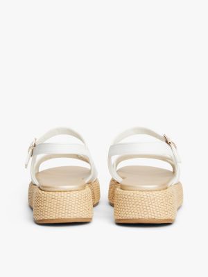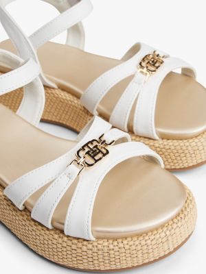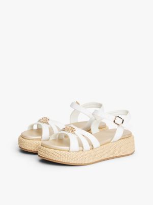 Schimmerndes Branding auf dem vorderen Riemen und die mit Jute bedeckte Zwischensohle verleihen dieser Plateau-Sandale elegante Tommy-Vibes.
