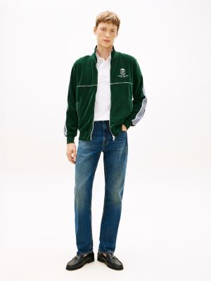 Diese Jacke aus Jersey-Verlourstoff mit Baumwollmix punktet mit Retro-Vibes durch die Color Block-Streifen entlang der Ärmel.