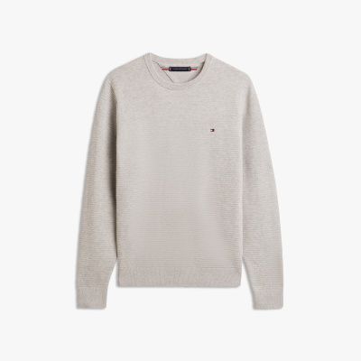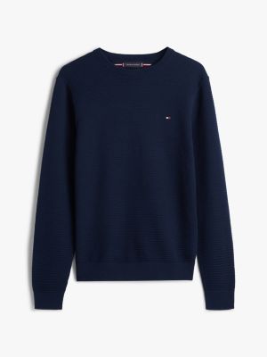 Dieser Strickpullover begeistert mit Struktur, während Rundhalsausschnitt, Bündchen und Saum mit smartem Rippstrick-Finish punkten.