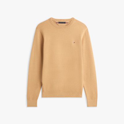 Dieser Strickpullover begeistert mit Struktur, während Rundhalsausschnitt, Bündchen und Saum mit smartem Rippstrick-Finish punkten.