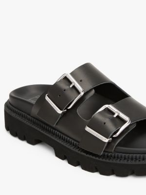 Diese Sandale aus Leder mit klassischem Doppelriemen-Design punktet mit einer rutschhemmenden, klobigen Laufsohle.