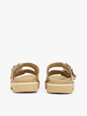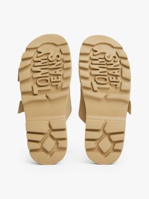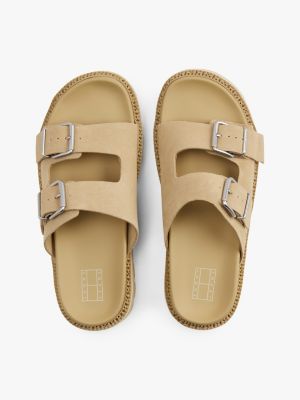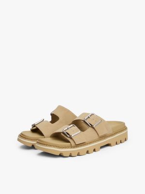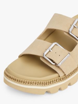Greife an warmen Tagen zu dieser Sandale aus edlem Wildleder mit klobiger, rutschhemmender Sohle und Doppelriemen mit Branding.