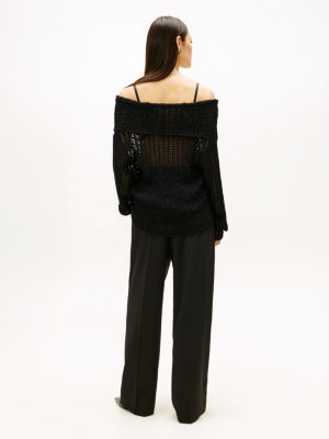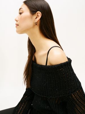 Dieser mit Pailletten verzierte Netzpullover hat einen eleganten Wasserfallausschnitt und verleiht deinem Festtagslook eine Extraportion Glamour.
