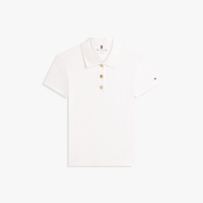 Dieses zeitlose Slim Fit Poloshirt mit seidigem Finish besitzt goldfarbene Knöpfe mit geprägtem Flag-Branding.