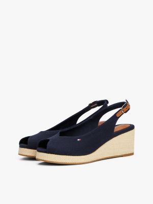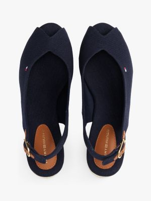 Diese Espadrille aus Baumwoll-Canvas mit offenem Zehenbereich und Slingback-Riemen verleiht deinem Look dank Keilabsatz elegante Vibes.