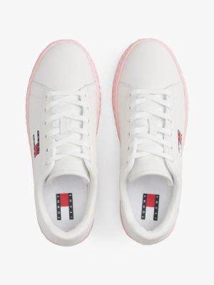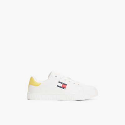Das geprägte Logomuster auf der Zwischensohle verleiht diesem schlichten Lace-up Sneaker typisches Tommy-Flair.