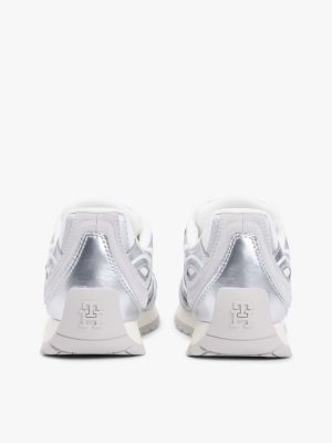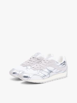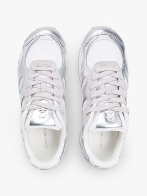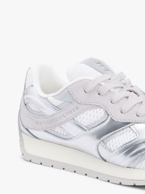 Veredle deine Athleisure-Looks durch diesen schicken Metallic-Sneaker im Retro-Design mit verschiedenen Strukturen und auffälligem TH-Monogramm-Branding.
