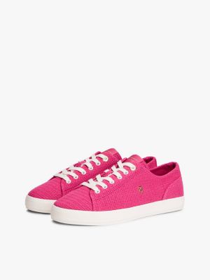 Sein strukturiertes Gewebe macht diesen Low-Top Sneaker mit gummiertem Logo zum auffälligen Begleiter für lässige Looks an sommerlichen Tagen.