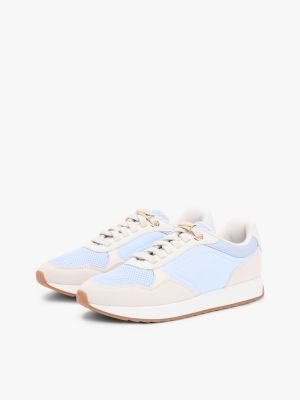Dieser dynamische Runner-Sneaker mit Mesh-Einsätzen, Haifischsohle und Details aus glänzendem Metall kombiniert sportliche Vibes mit Eleganz.