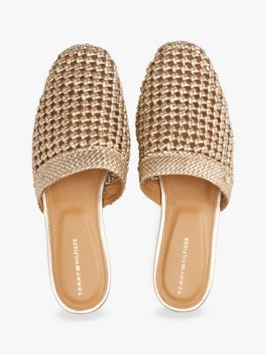 Verleihe deinem Look Struktur, indem du in diese grobmaschige Häkel-Pantolette mit Square Toe und Metallic-Finish schlüpfst.