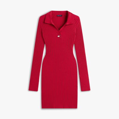Für einen legeren, aber stilvollen Look ist dieses Slim Fit Strickkleid mit Tommy-Badge und sportlichem Kragen die perfekte Wahl.