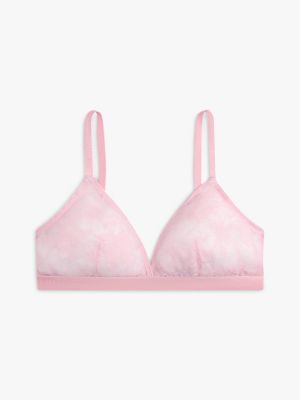 Transparente Blumenspitze verleiht diesem femininen Triangel-BH eine romantische Note, während das gleichfarbige Logomuster am Unterbrustband sportliche Vibes verströmt.