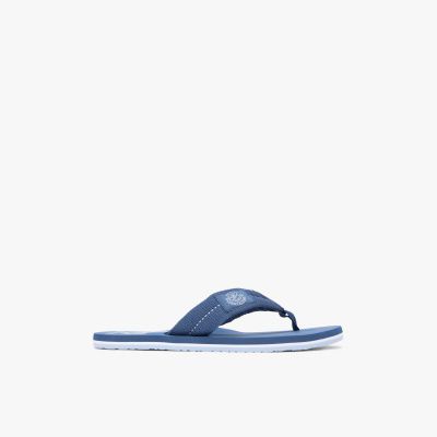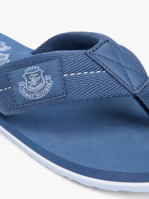 Zeig dich am Strand in diesem schicken Zehentrenner mit Ristriemen aus Gurtband, Kontrast-Steppnähten und einem auffälligen TH-Wappen-Patch.