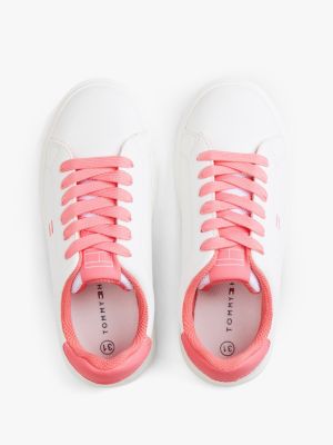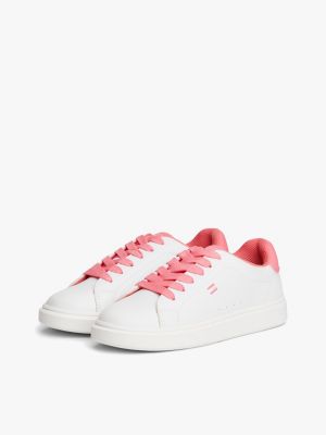 Dieser Sneaker punktet mit farbigen Kontrast-Akzente: Die Zunge, der Einsatz an der Ferse und die seitliche Flag sind farblich aufeinander abgestimmt.